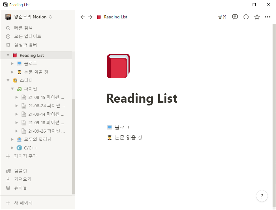 메모, 데이터베이스, 칸반보드, 달력 등 서비스를 제공한다고 하는데 사실 그 기능들을 다 잘 쓸지는 만무하고, 나의 경우 스터디 노트 등으로 활용해보려고 한다.